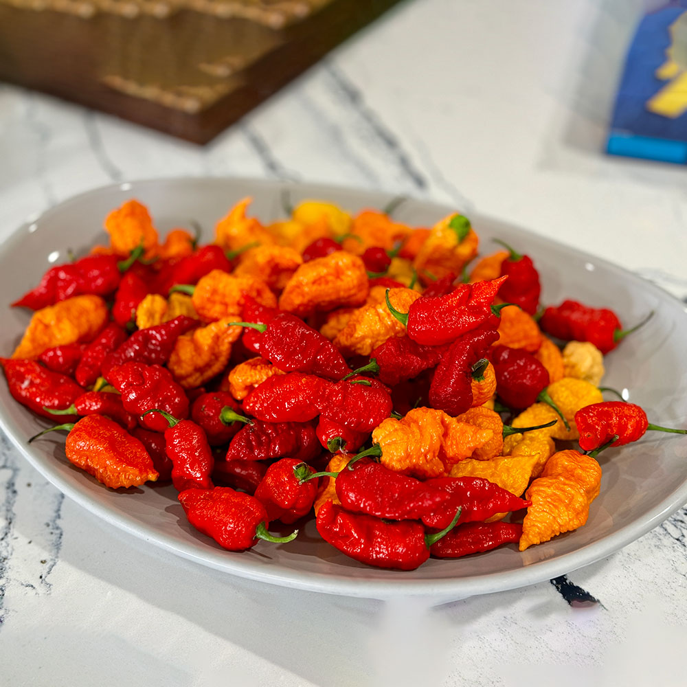 “Just as hot as any pod I’ve ever had. Best flavor though I’ve had for anything as a potential world record holder! Only ones that can match this heat that I’ve had are CP115 and Primotalii. I put this above the Death Spiral, Chocolate Fatalii Jigsaw, BTR Scorpion, Chocolate Bhutlah, Moruga Scorpion, Butch T Scorpion, 7-Pot Primo’s, and many other super hots I’ve had. Definitely my new favorite superhot for sure. After having it for a second night I felt it may have been slightly hotter than the CP115 and Primotalii. The flavor is more fruity than floral but a real scorcher.”